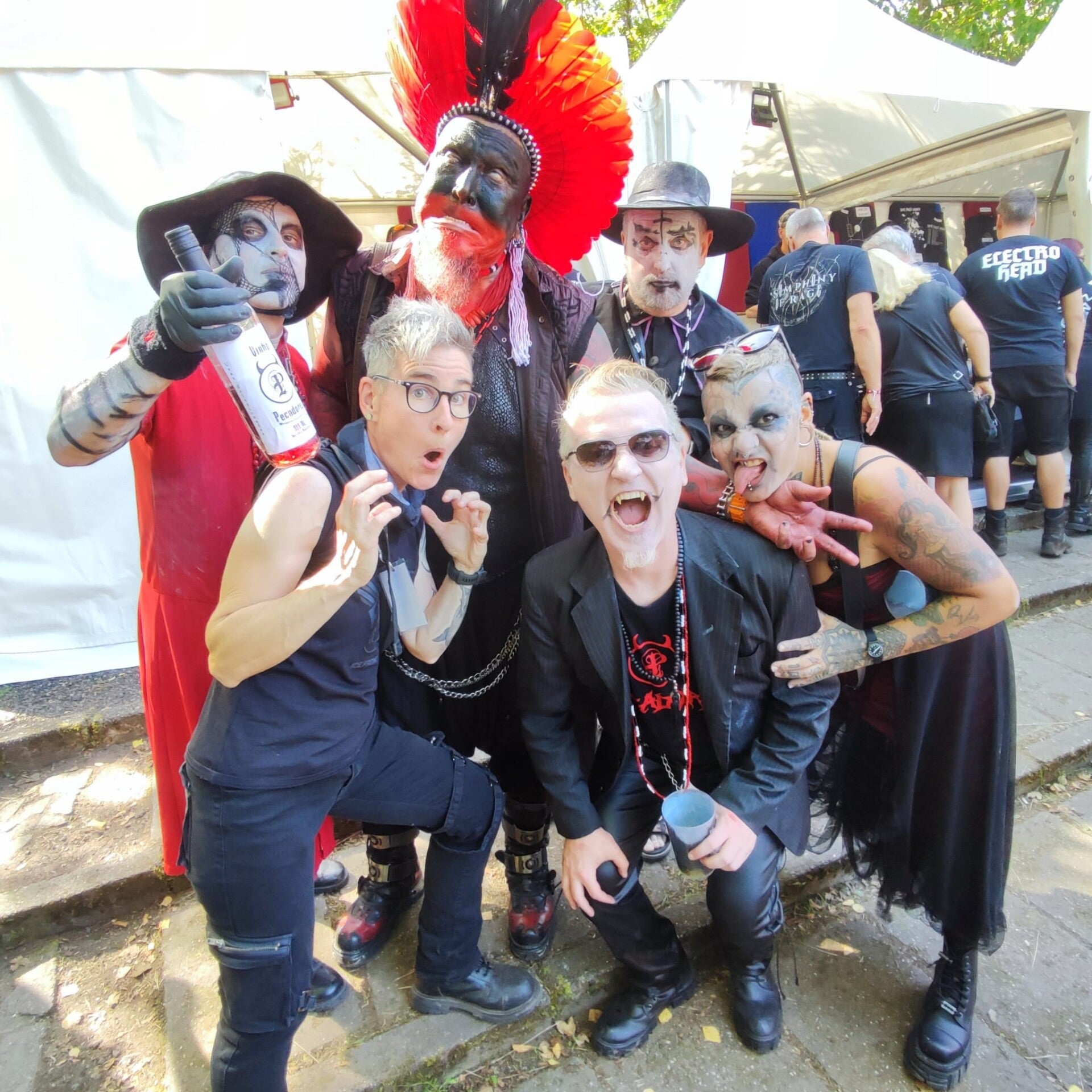 Mittelalterlich wurde es mit Heimataerde, die Dark-Electro mit mittelalterlichen Instrumenten kombinierten. Sänger Ashlar entführte das Publikum in düstere Geschichten voller Vampire, Werwölfe und Dämonen.